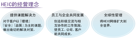 创业以来,HEIC给电子行业不断带来各种协调与创造。 拥有忠实于作为现场交流者所必需的平衡感。 HEIC一直以成为客户与时代所必需的贸易公司而努力。 为您介绍HEIC的经营理念与4个S。